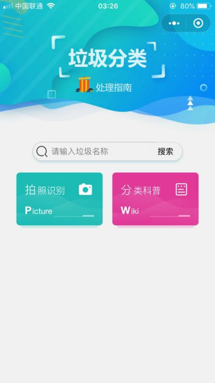 方法2. 在微信中搜索“垃圾分类处理指南”即可进入小程序