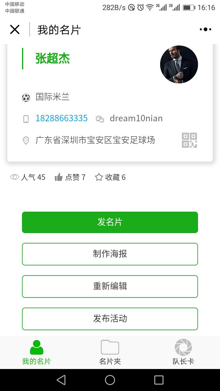 队长沟通,发送名片,足球寻找球队,使得更多人来积极参与体育活动,促进民间足球文化沟通.