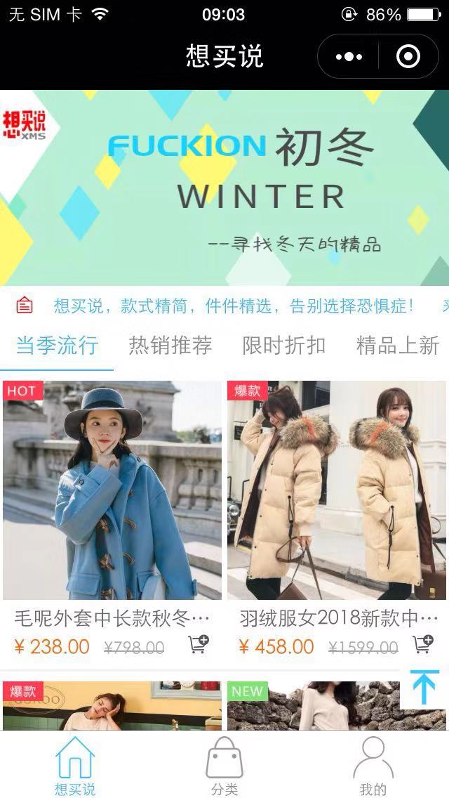 微信想买说小程序,超实用超便捷的购物小程序,超多时尚女装用品汇聚在这里,一键快速找到自己想要的商品,还有超多优惠券可以免费领取使用,让你花最少的钱买到心仪的商品!