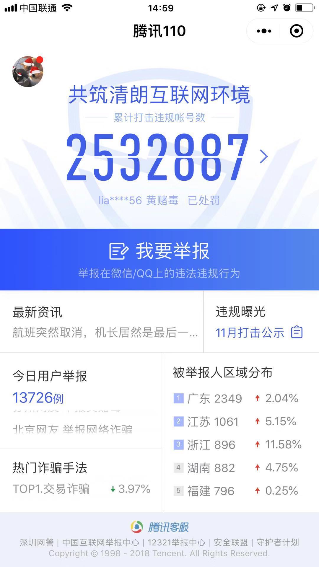 方法2. 在微信中搜索“腾讯110”即可进入小程序