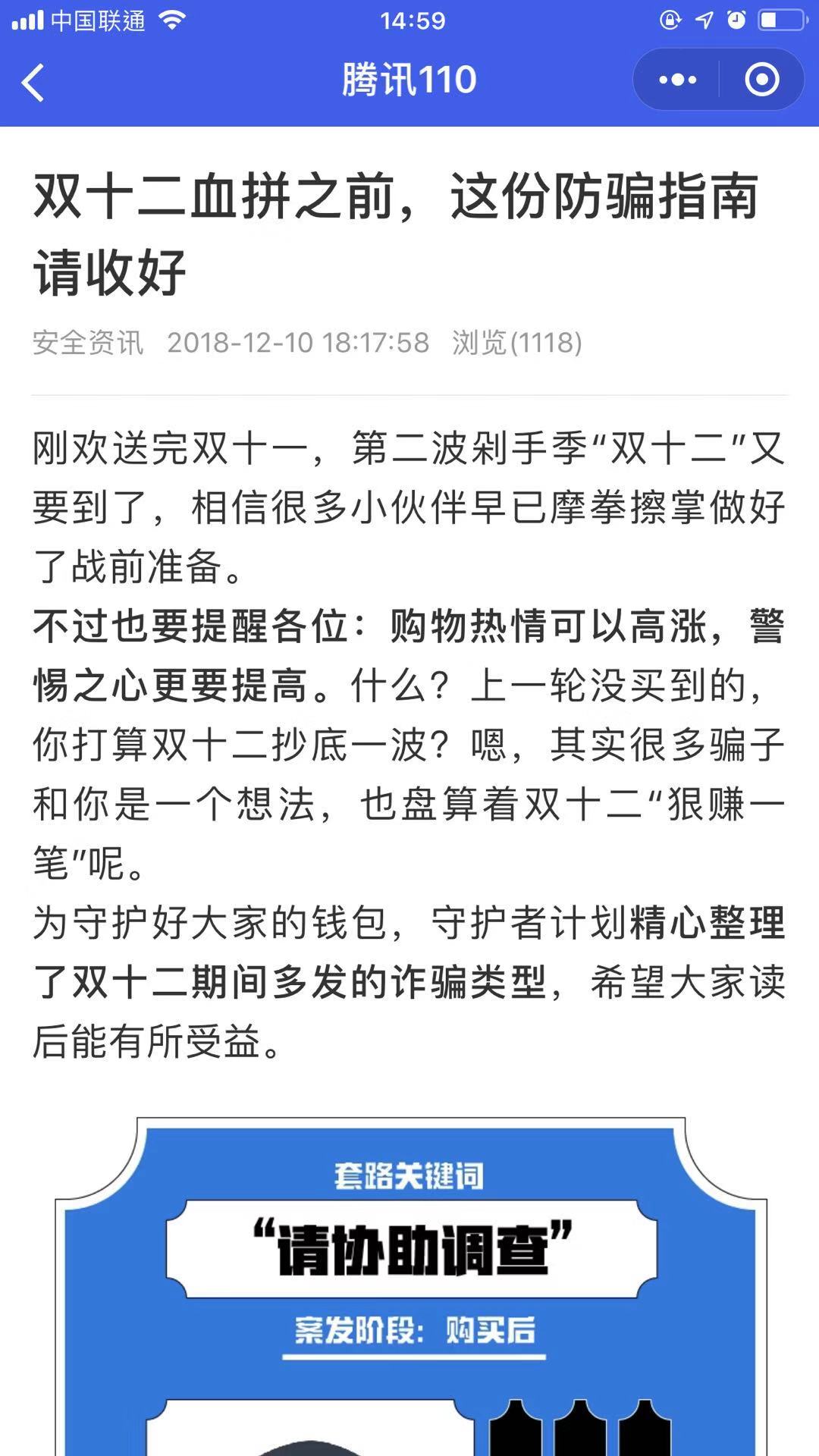 方法1. 使用微信扫描本页面上方二维码进入腾讯110的小程序