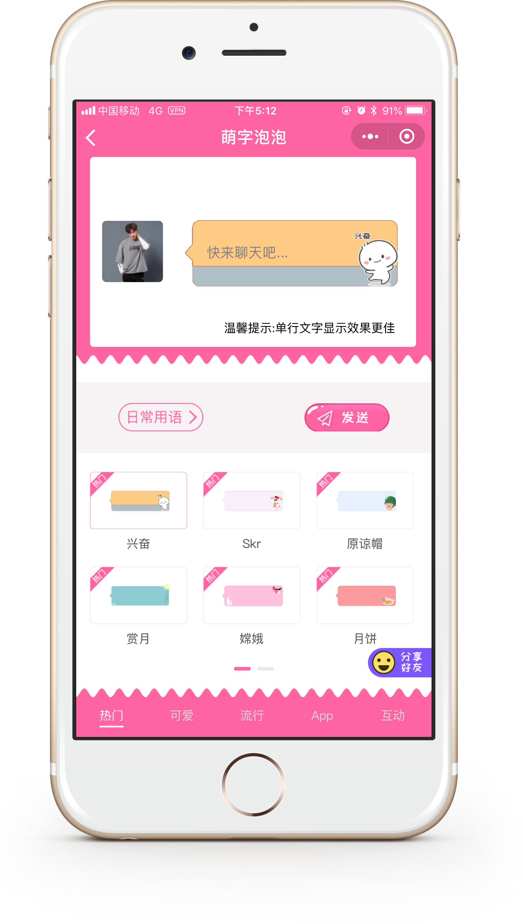 聊天怎么出众?抛开绿色的对话框,即刻炫彩起来。朋友圈怎么玩?当然是大字霸屏。