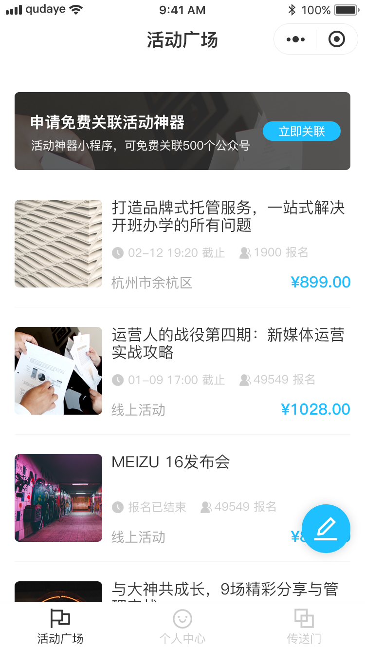 活动神器是一款简洁高效的社交化活动发布小程序,您可以在这里发起培训机构课程、商务会议、好友聚会等活动。在发布的同时,您还可以为本次活动添加红包,增加活动的传播力度,实现报名人数指数级增长