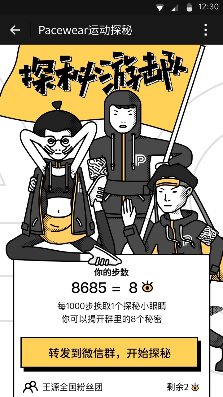 Pacewear运动探秘小程序,在这里发布匿名说说、变声语音、打码图片、大冒险问答,好友要走1000步才能查看你的小秘密~快来探秘吧!