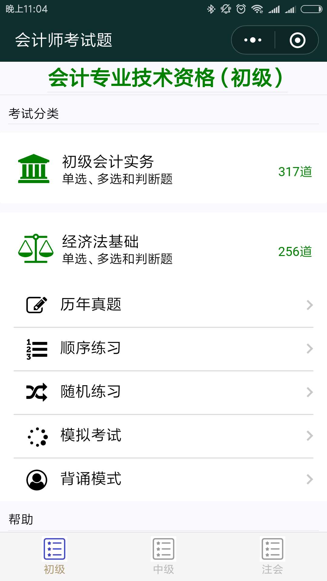 一款服务于全国会计类考试(会计职称、注册会计师)的在线真题练习小程序,支持顺序练习、历年真题练习、随机练习、模拟考试、背题模式等。