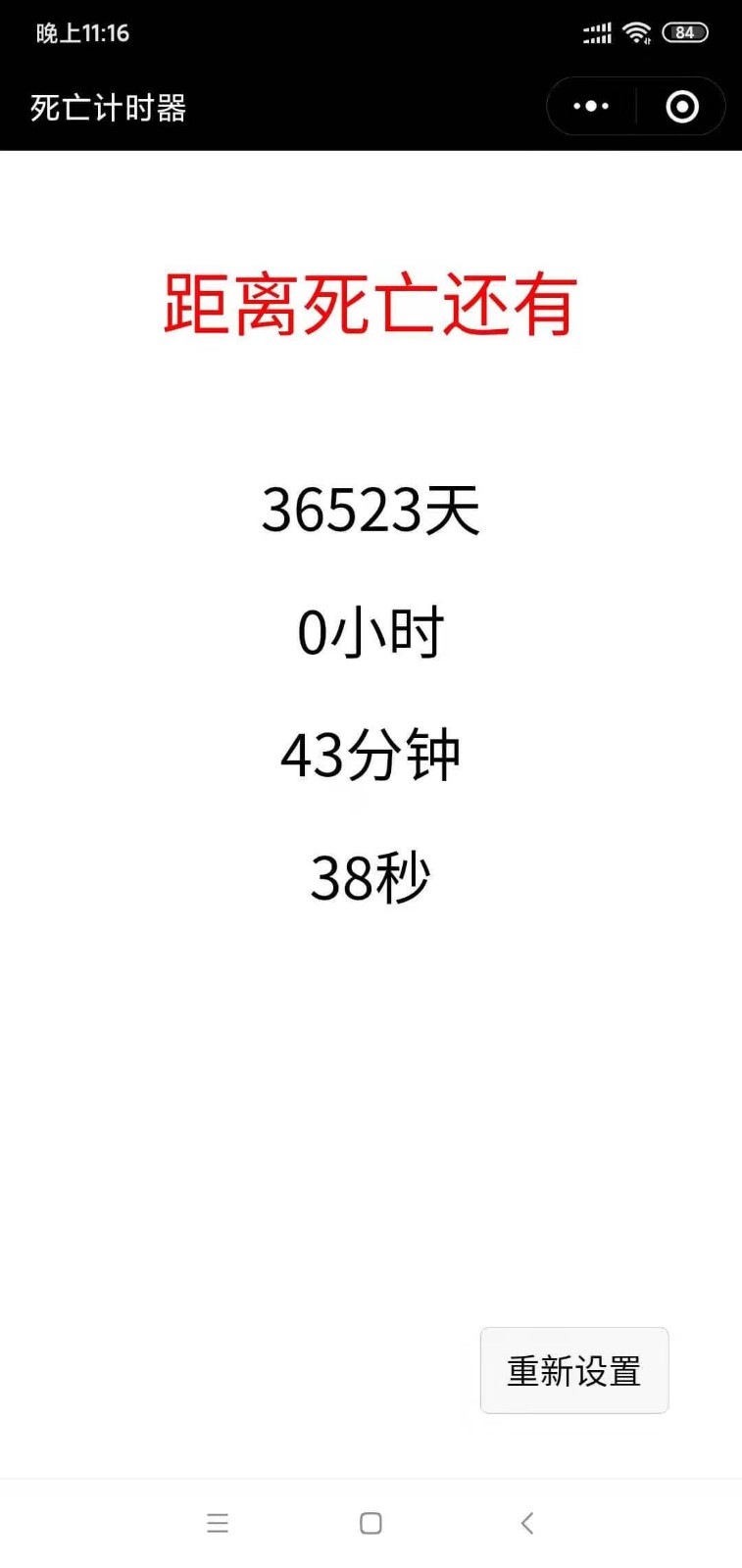 方法1. 使用微信扫描本页面上方二维码进入死亡计时器的小程序